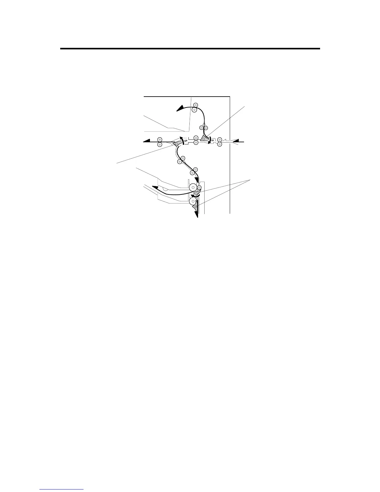 junction gate is open so that the paper goes downwards to the tray area.