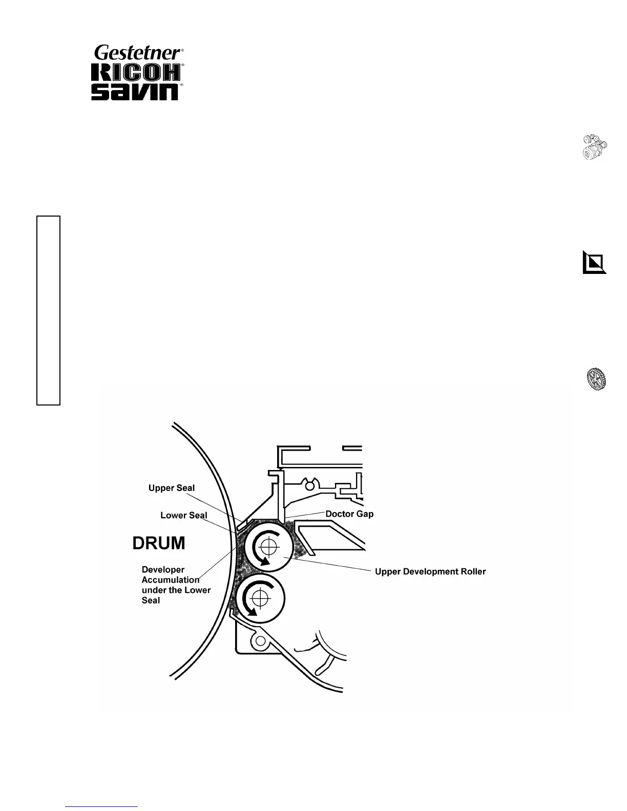 Developer and the Drum if a large amount of Developer accumulates near the photoconductor gap. The