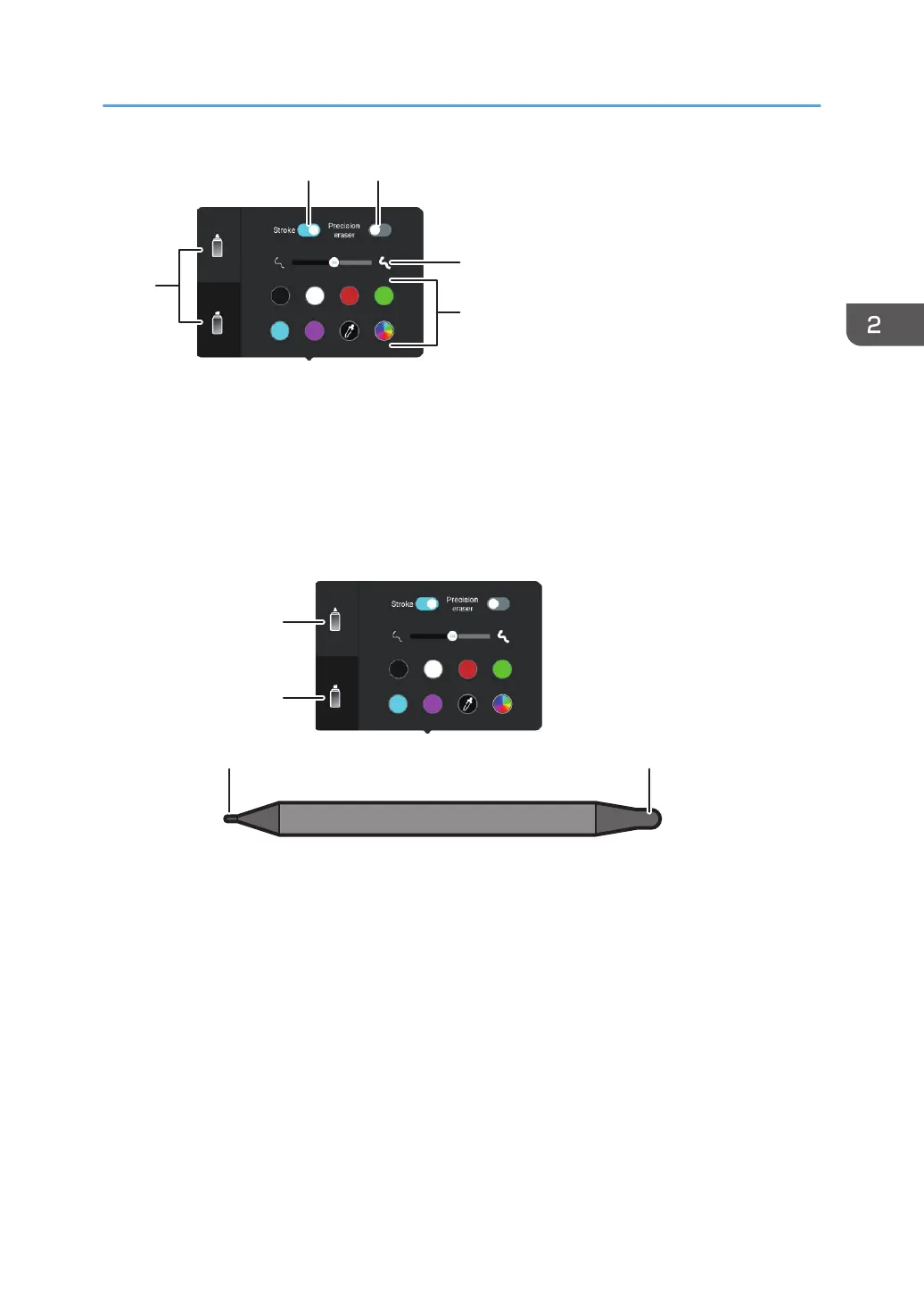 The thickness and color of the line can be set for each pen nib, and two different writing settings can be