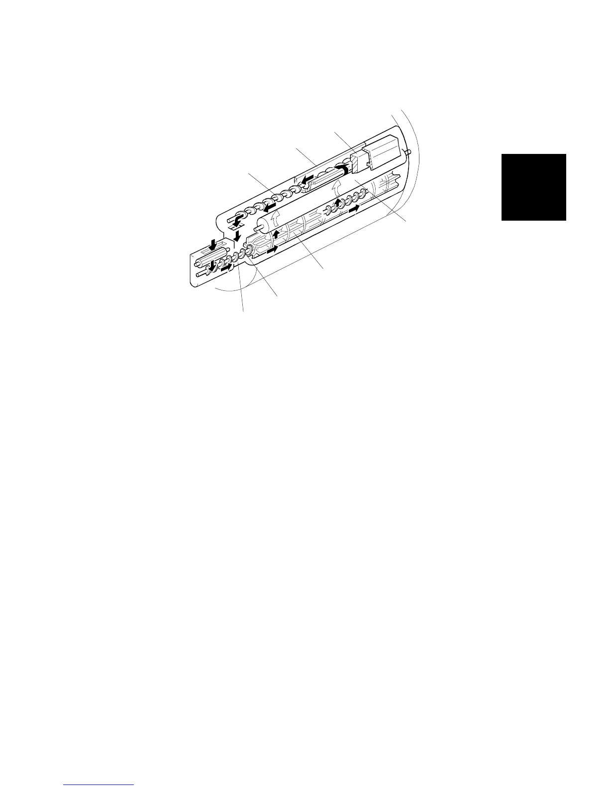 auger [B]. This carries developer to the rear and supplies developer to the