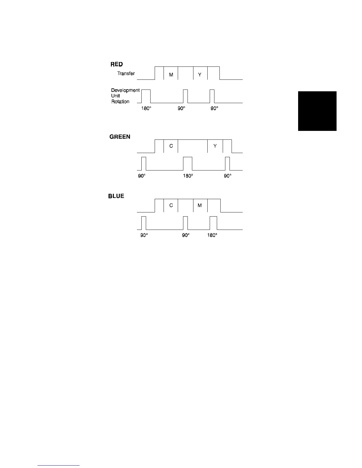 For Blue, the revolver must turn from Cyan to Magenta, which is 90