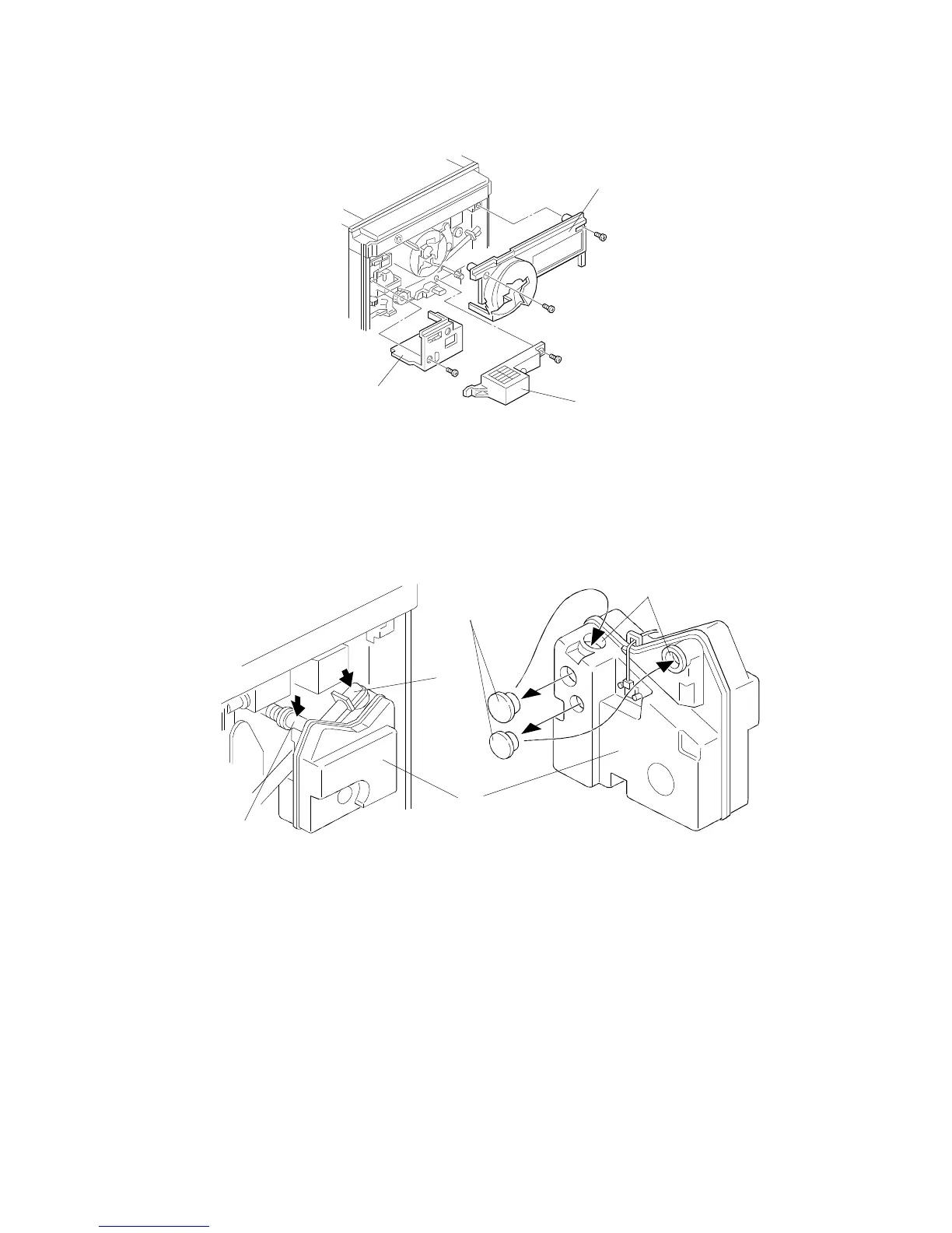 1. Tap the toner collection duct joints [D] and [E] once or twice. This