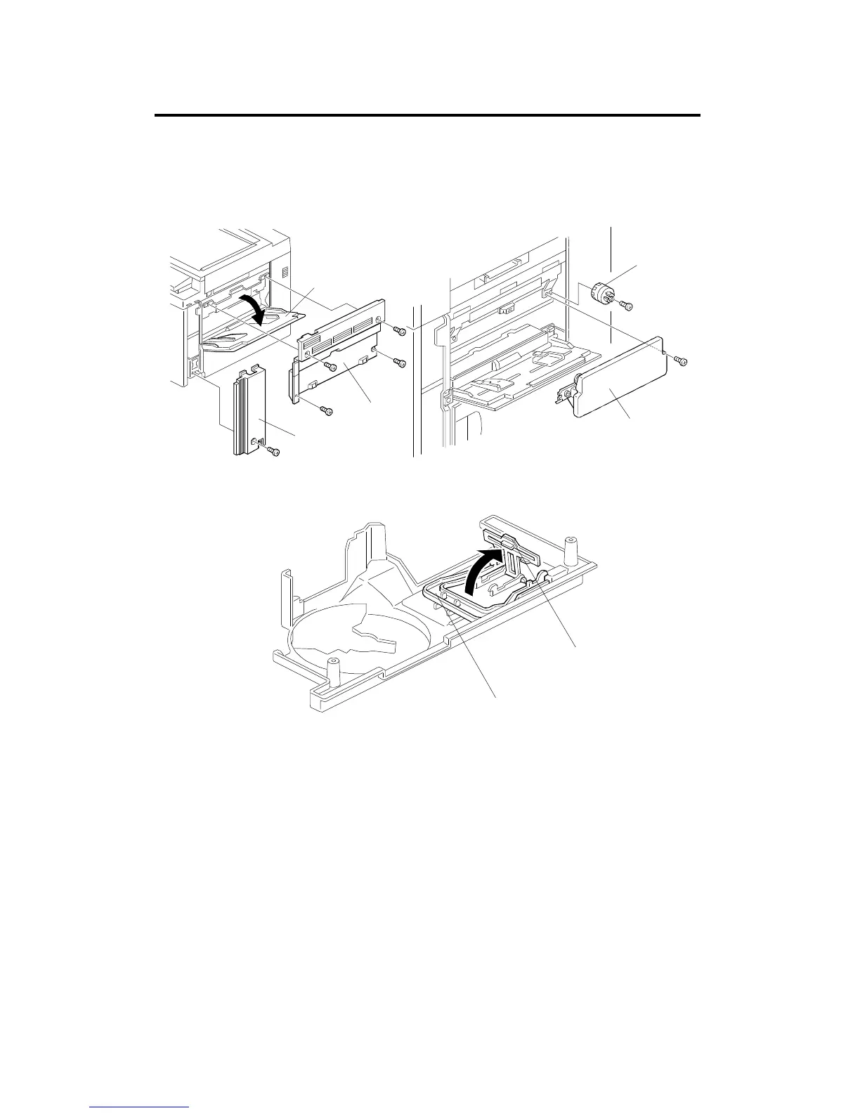 (2) Right cover [B] (open the by-pass feed table [C], then remove 4