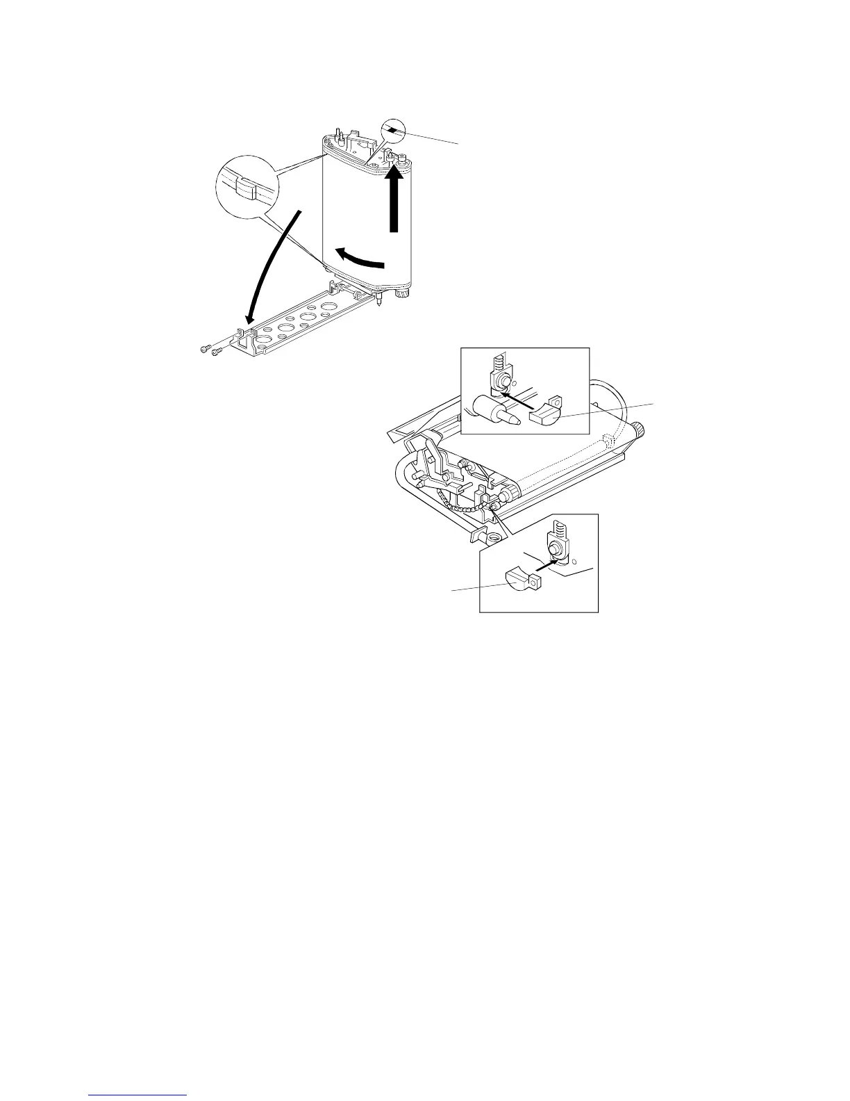 8. Then reinstall the belt tension screws and remove the transfer belt