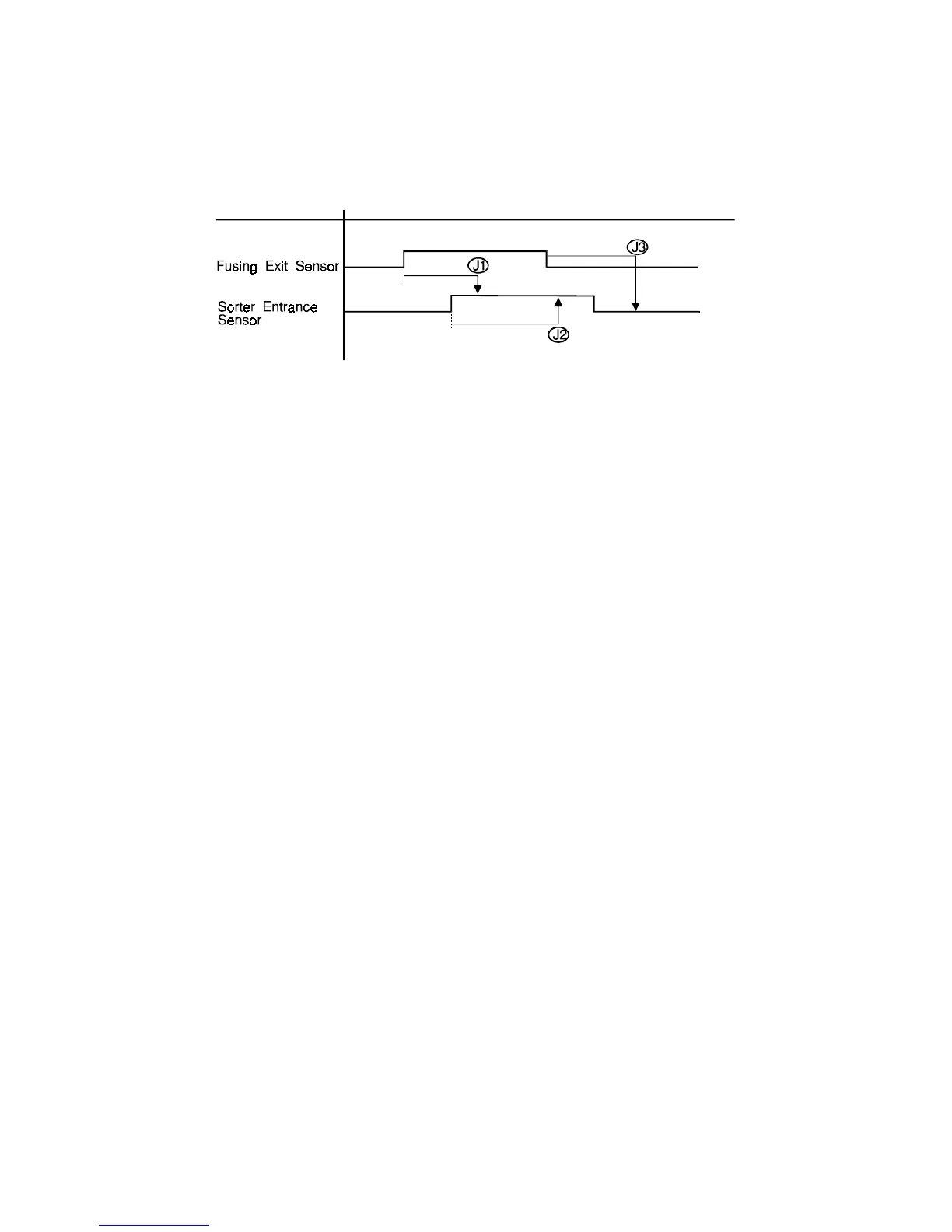 J3: The sorter entrance sensor does not turn off within 1 s after the fusing