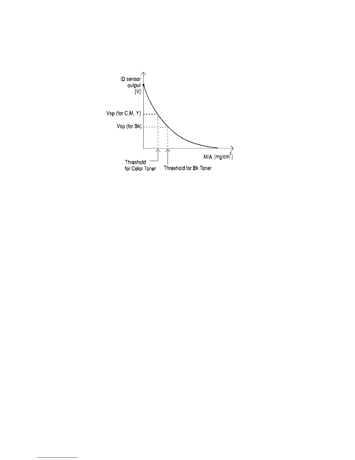 thresholds (one for Bk toner and one for color toner). For each color, the
