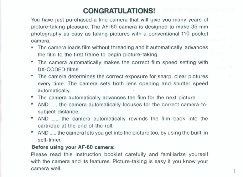 picture-taking pleasure. The AF·60 camera is designed to make 35 mm