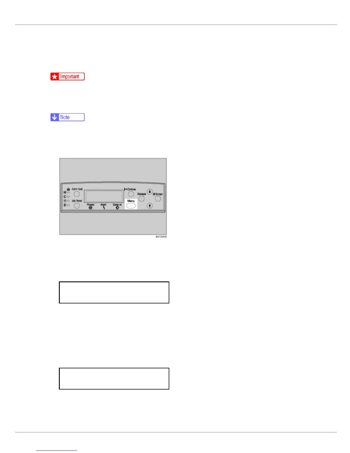 B Press the {U} or {T} key to display “Maintenance”, and then press the