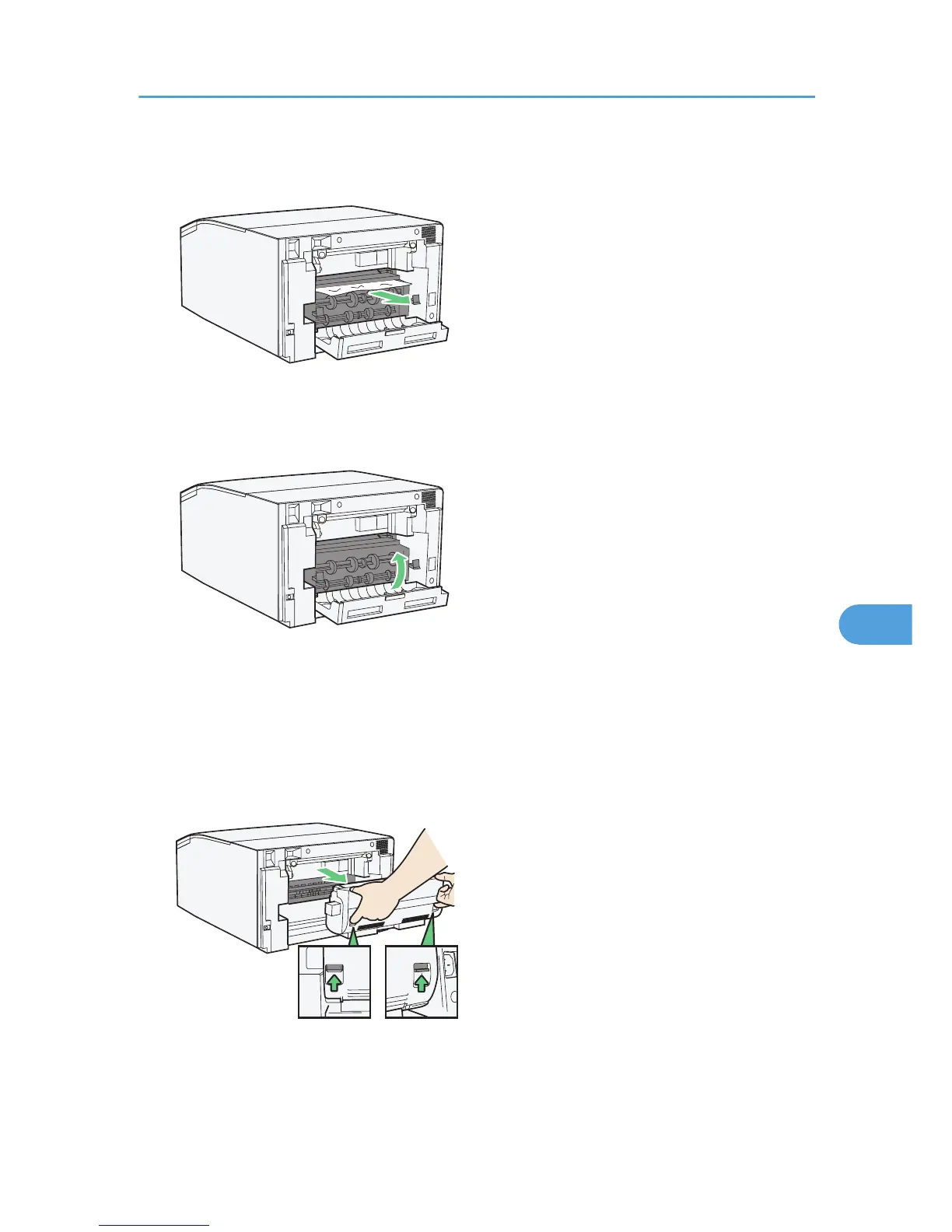 1. Pressing the catches on both side of the duplex unit, remove the unit.