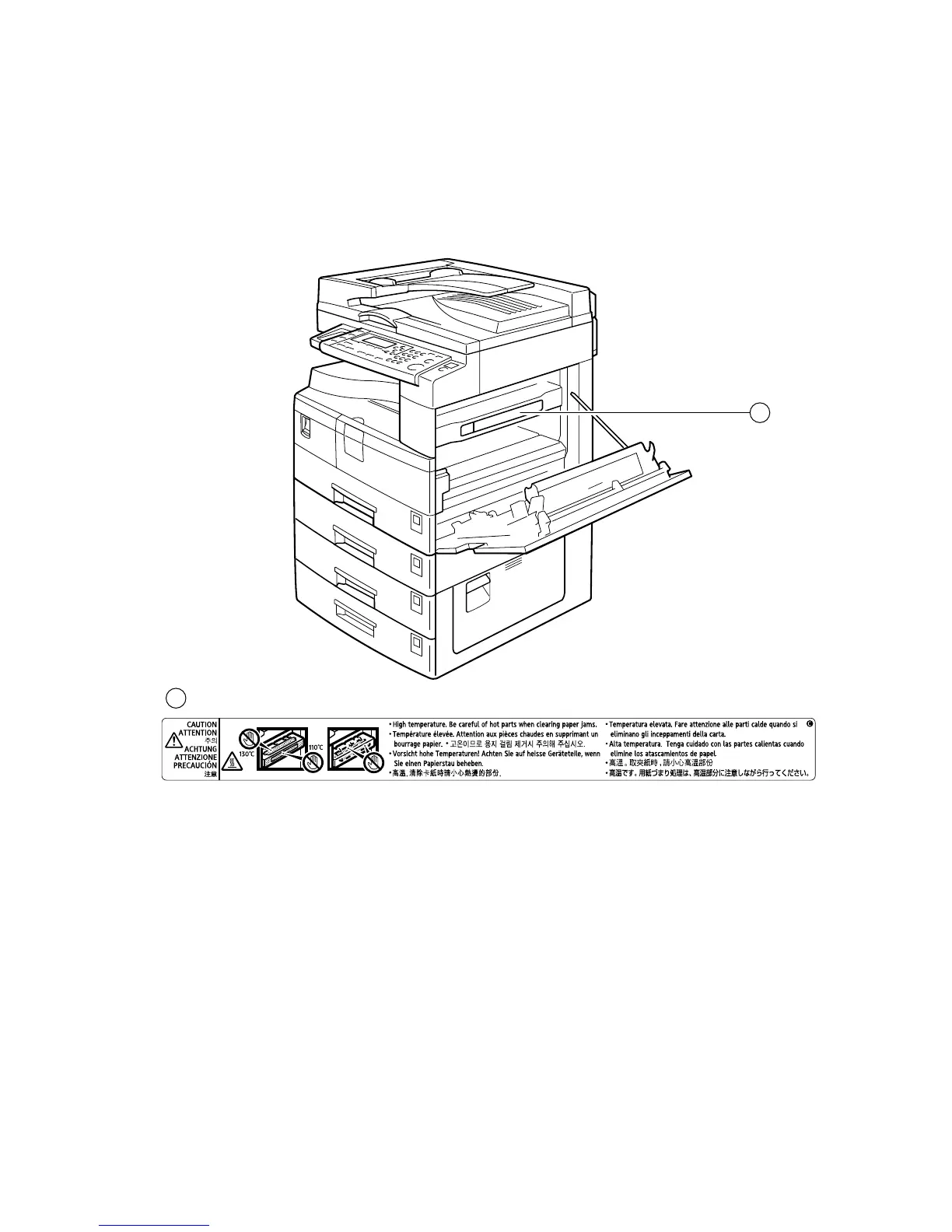 Ricoh Aficio MP 1600 - Positions of Labels and Hallmarks for RWARNING and RCAUTION Labels