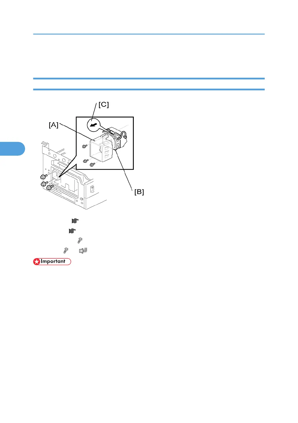 Make sure that the arrow on the fan [C] points the outside of the copier when you reassemble. The