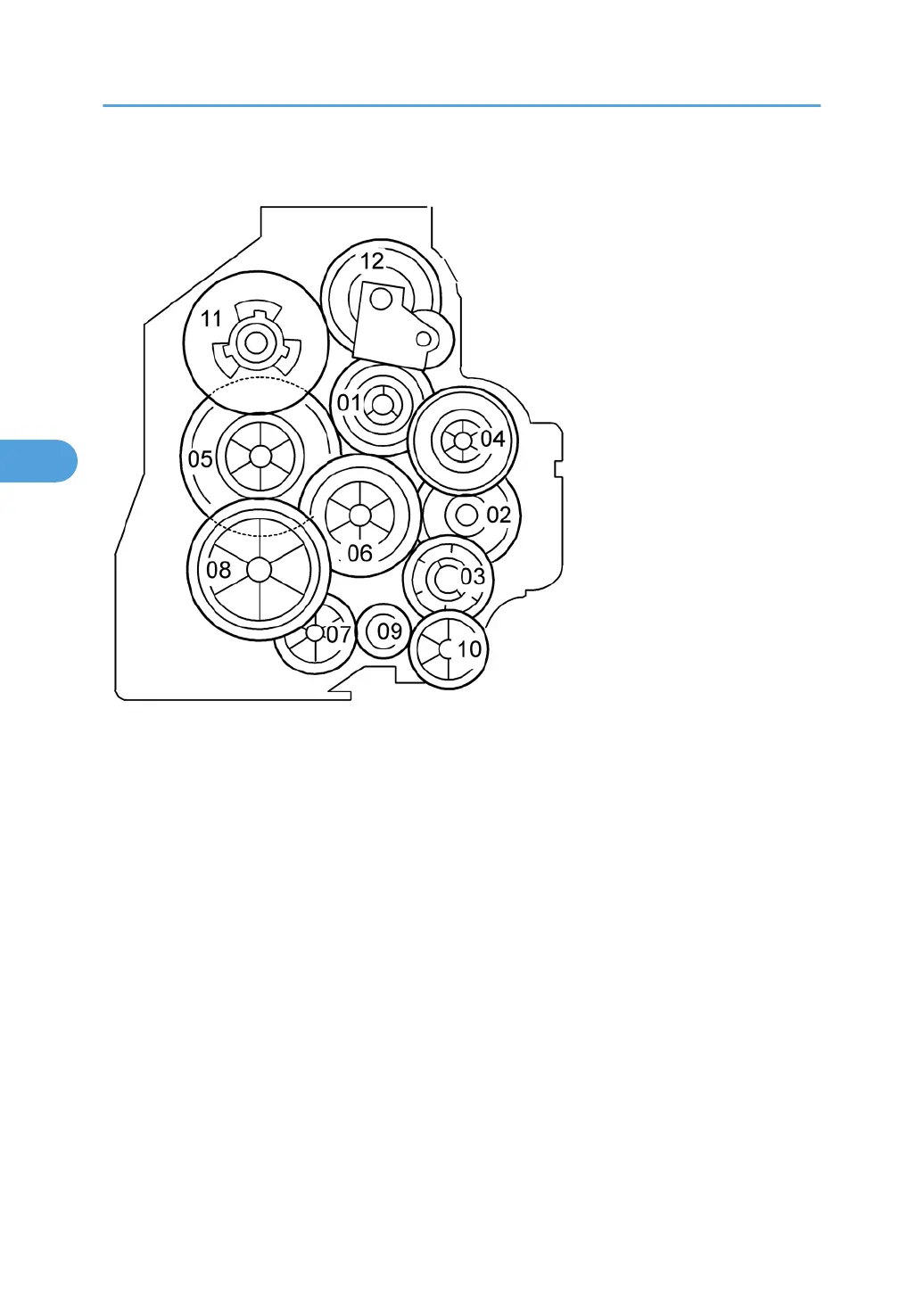 The gears are numbered 1 to 12 in the order in which they are to be installed in the gearbox. These numbers