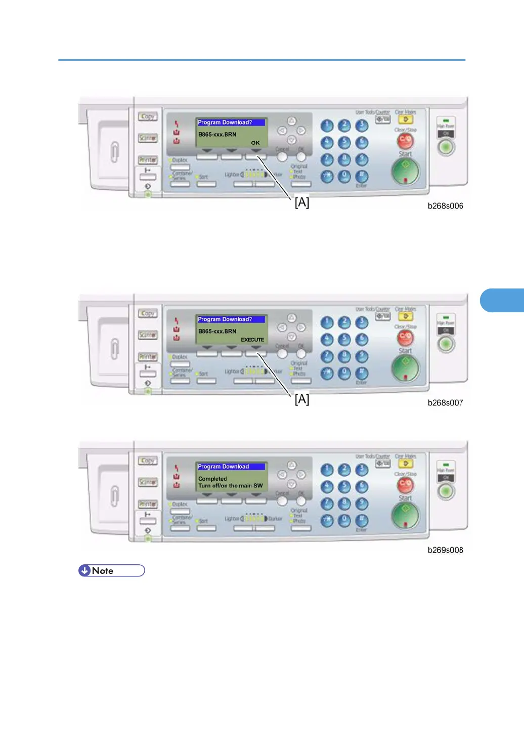 • Do not turn the machine off while the message “Updating....xx%” shows. This message indicates