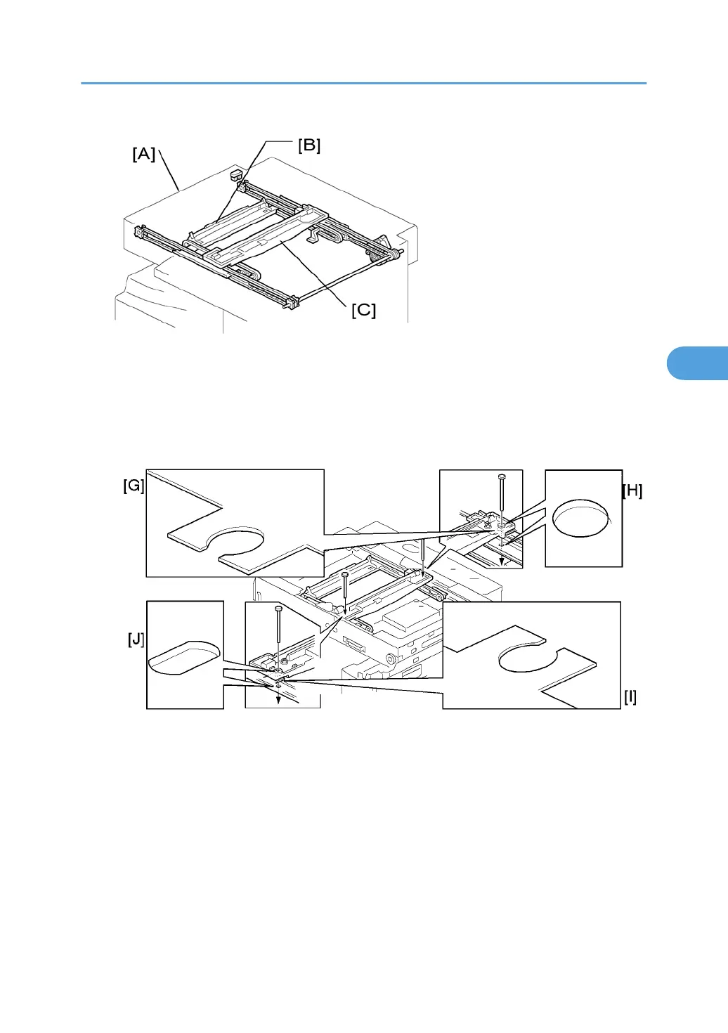 • To adjust the belt contact points on the scanner bracket (See ”Adjusting the Second Scanner