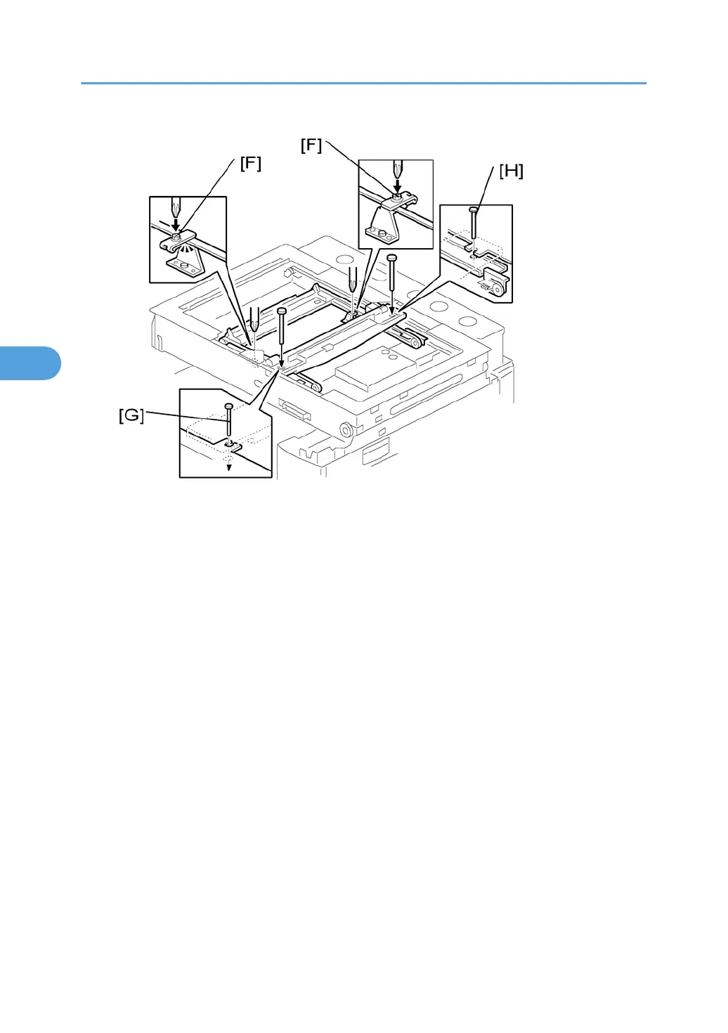 14. Insert the positioning tools [G] [H] through the holes and marks.