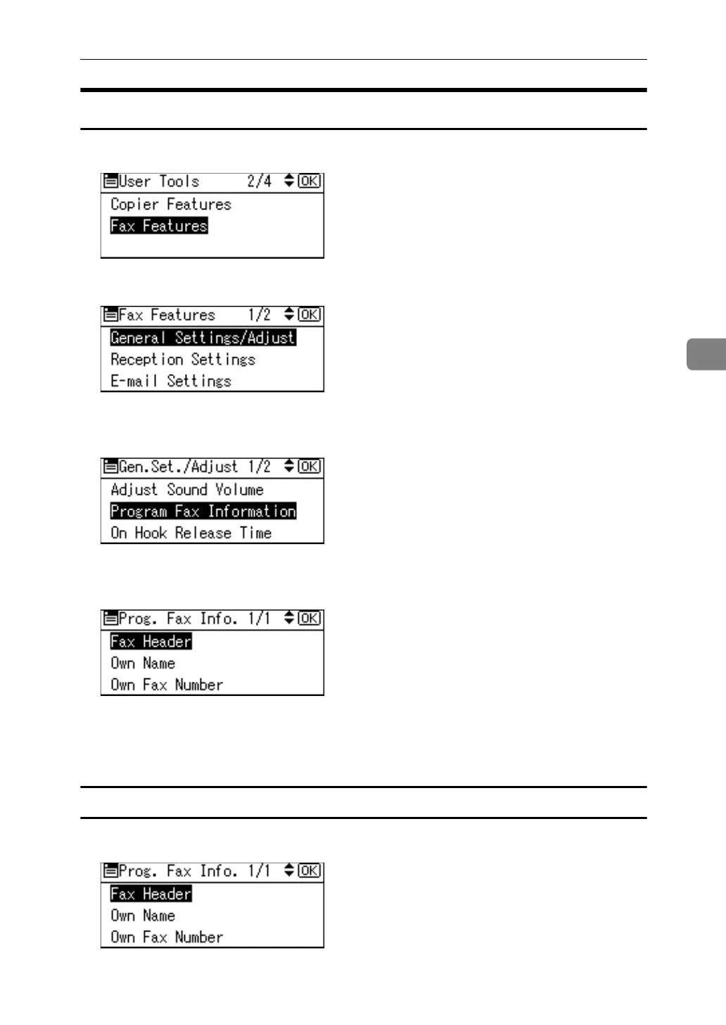 C Select [Program Fax Information] using {U} or {T}, and then press the {OK}