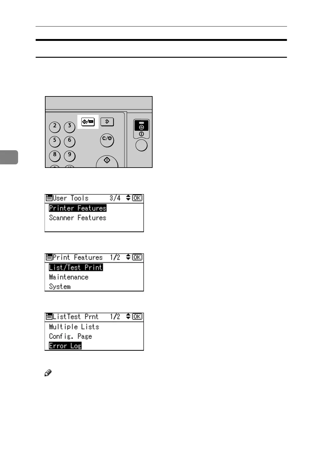 D Select [Error Log] using {U} or {T}, and then press the {OK} key.