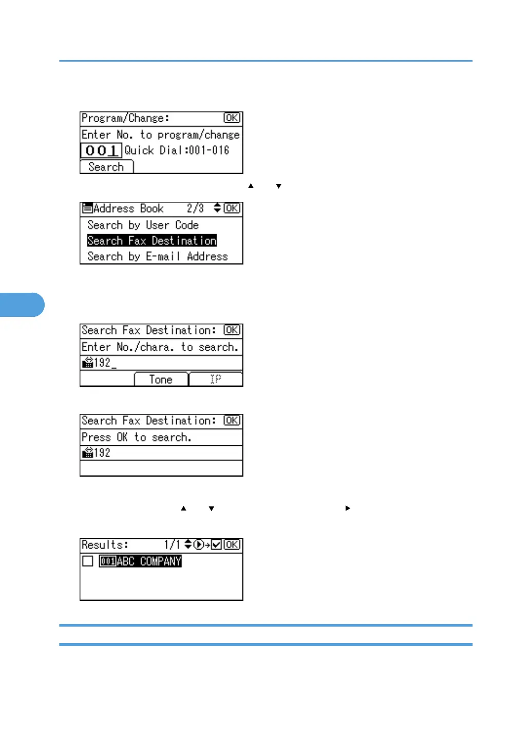 2. Select [Search Fax Destination] using [ ] or [ ], and then press the [OK] key.
