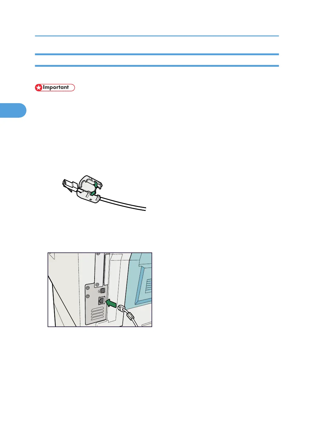 1. A ferrite core for the Ethernet interface cable is supplied with this machine. Attach the ferrite