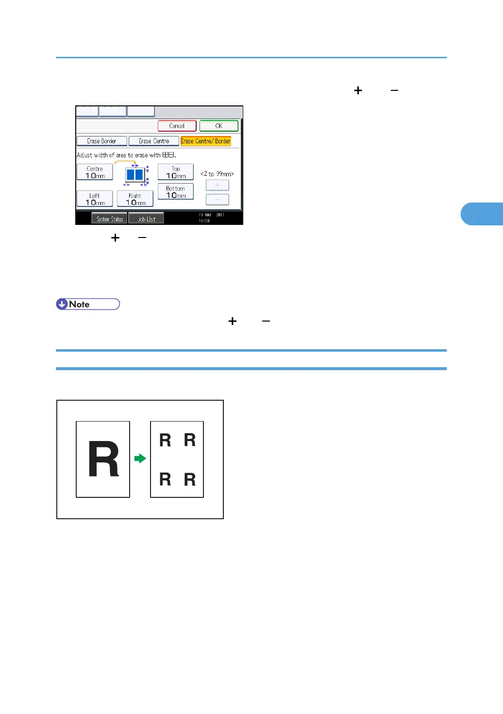 Pressing [ ] or [ ] changes the width in increments of 1 mm (0.1 inches). Pressing and holding