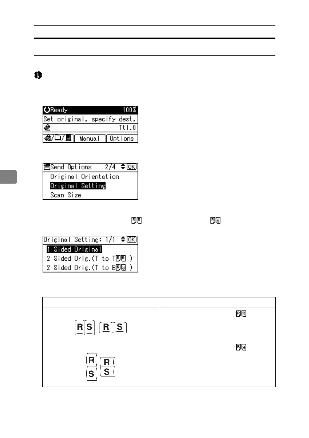 key. Select [2 Sided Orig.(T to T )] or [2 Sided Orig.(T to B )] to scan two-sid-