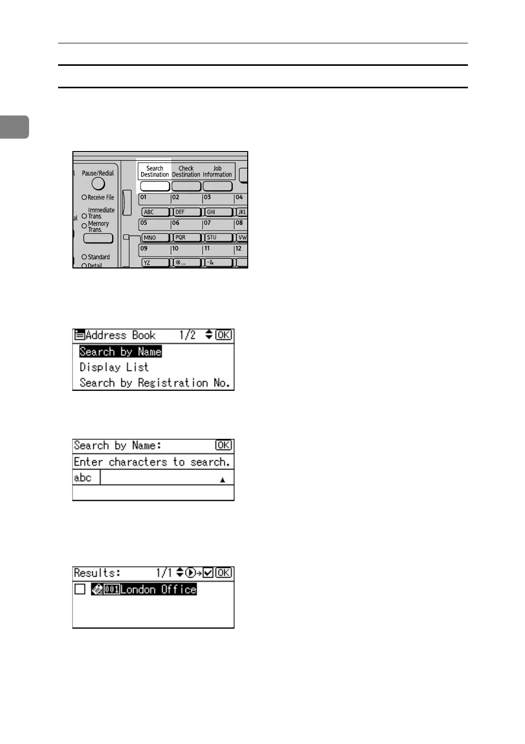 Use the following procedure to search by name for a destination in the machine's
