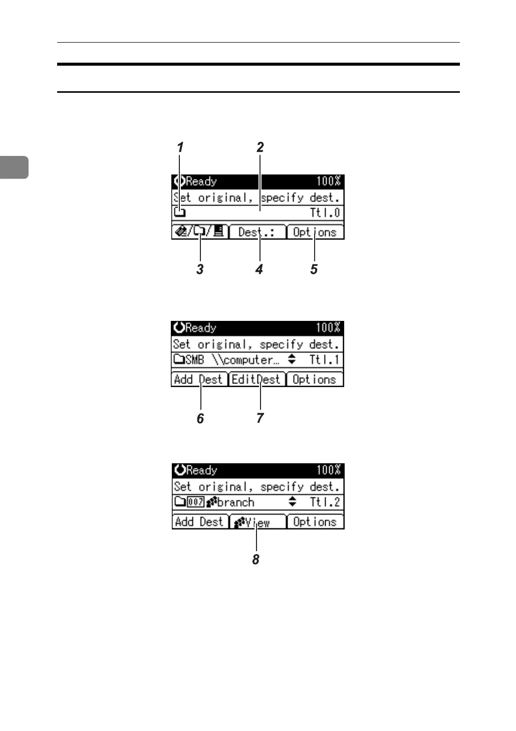 This section describes the screen layout when sending scan files by Scan to Folder.