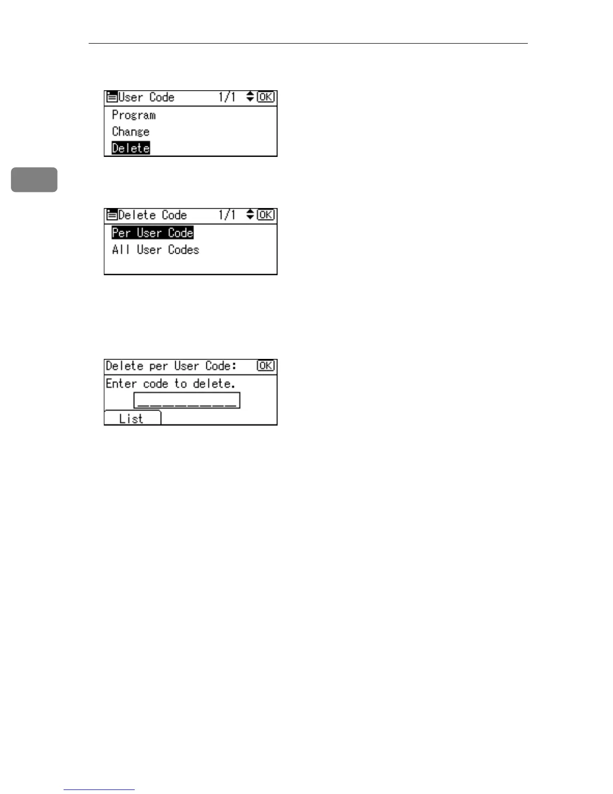 When you select the user code from the User Code List, press [List]. Select the