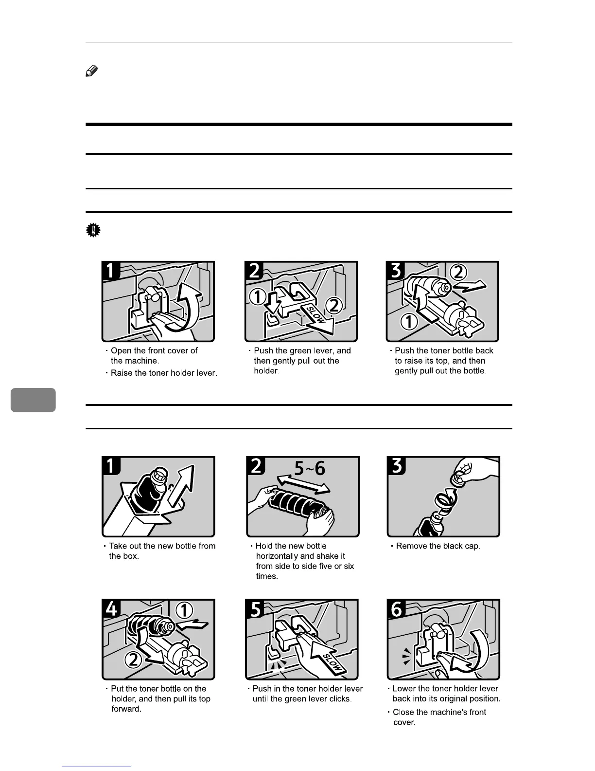 ❒ Do not shake the removed toner bottle. The remaining toner might scatter.