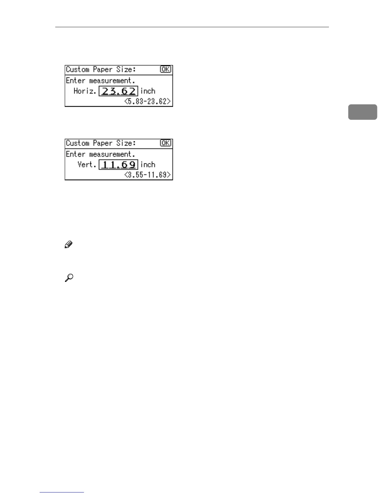 G Enter the vertical size of the paper (Vert.) with the number keys, and then