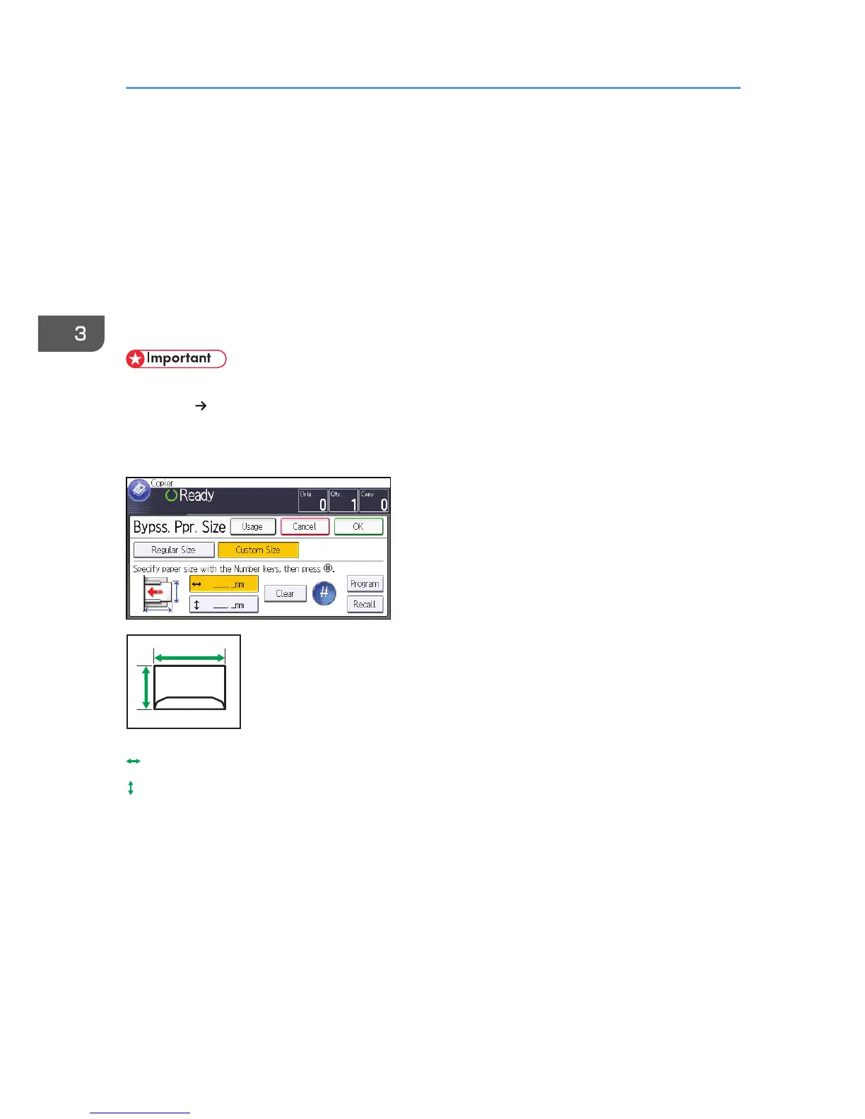 To copy onto custom size envelopes, you must specify the envelope's dimensions. Specify the horizontal