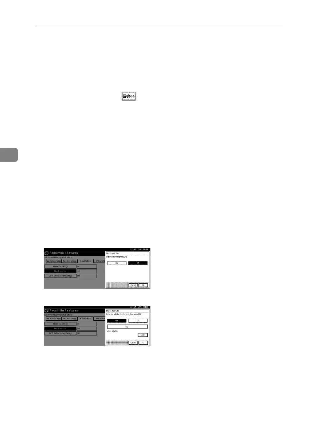 tings to limit the size of sent e-mail. When this function is set to on, transmis-