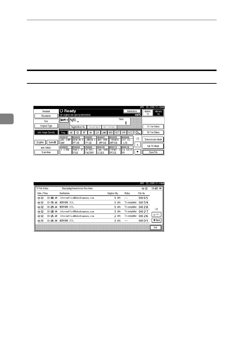 and name programmed in the destination list appears. For a transmission