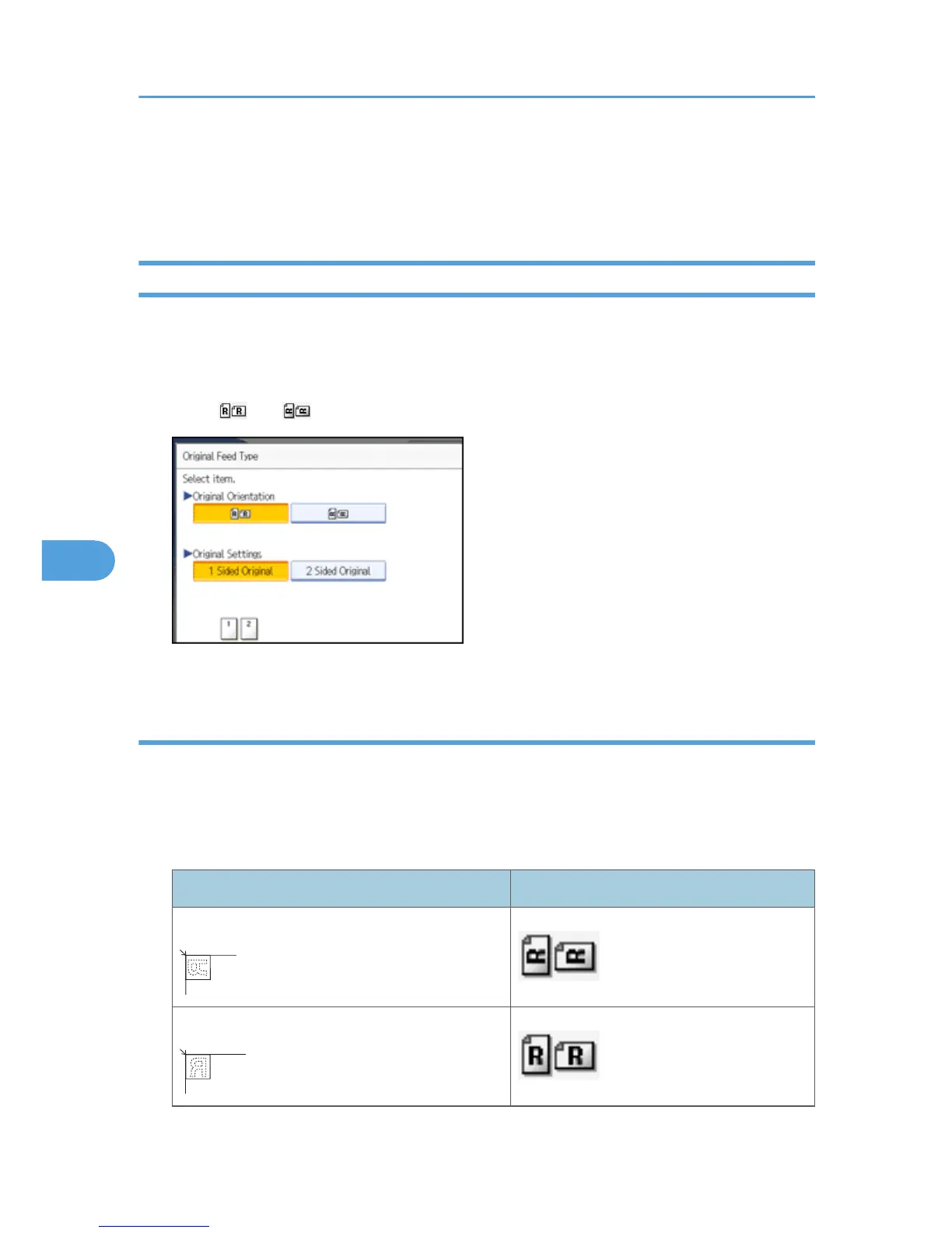 This section explains Original Feed Type settings such as orientation and scan sides of originals.