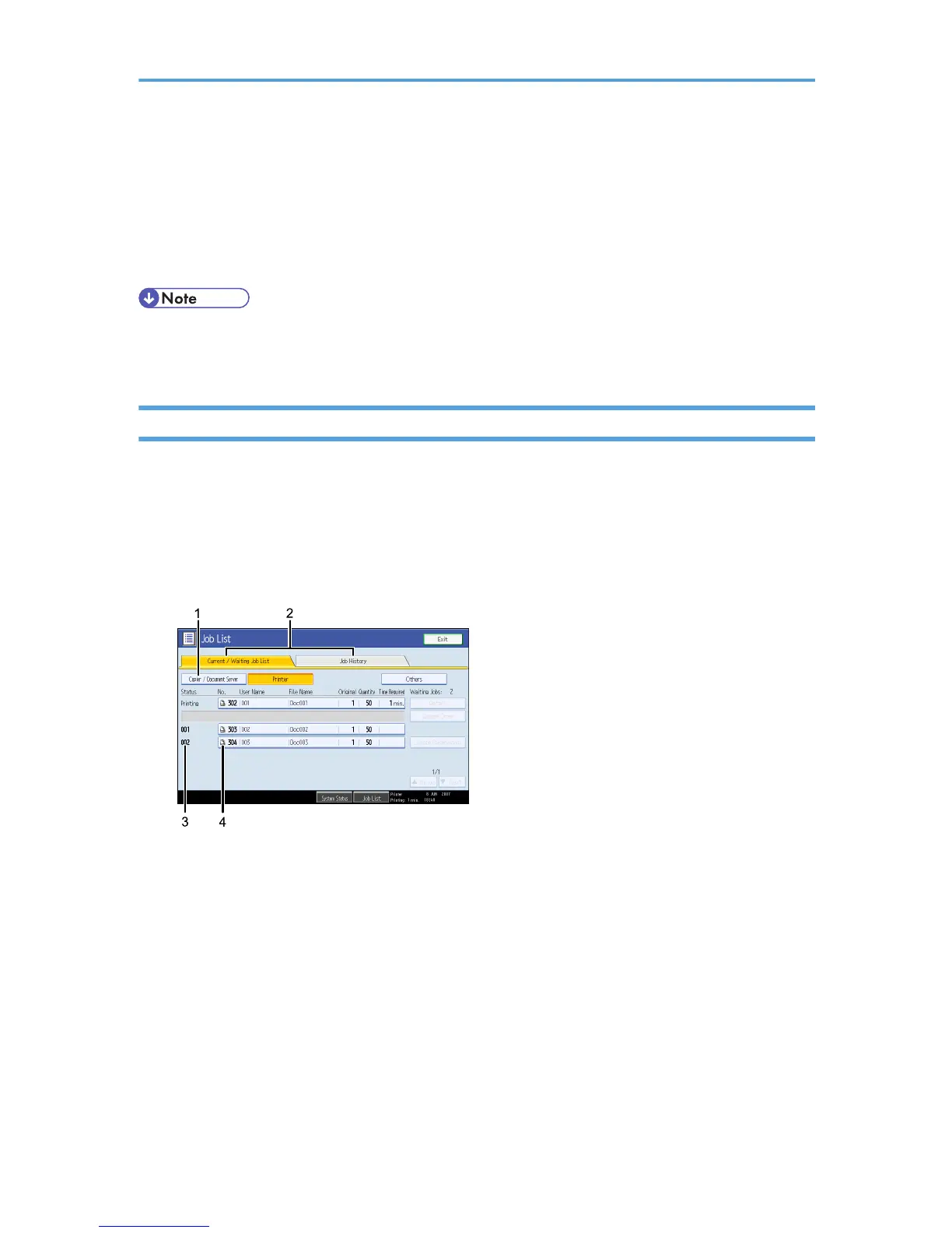 • Documents printed using the facsimile function and scanner function are not displayed in the job list.