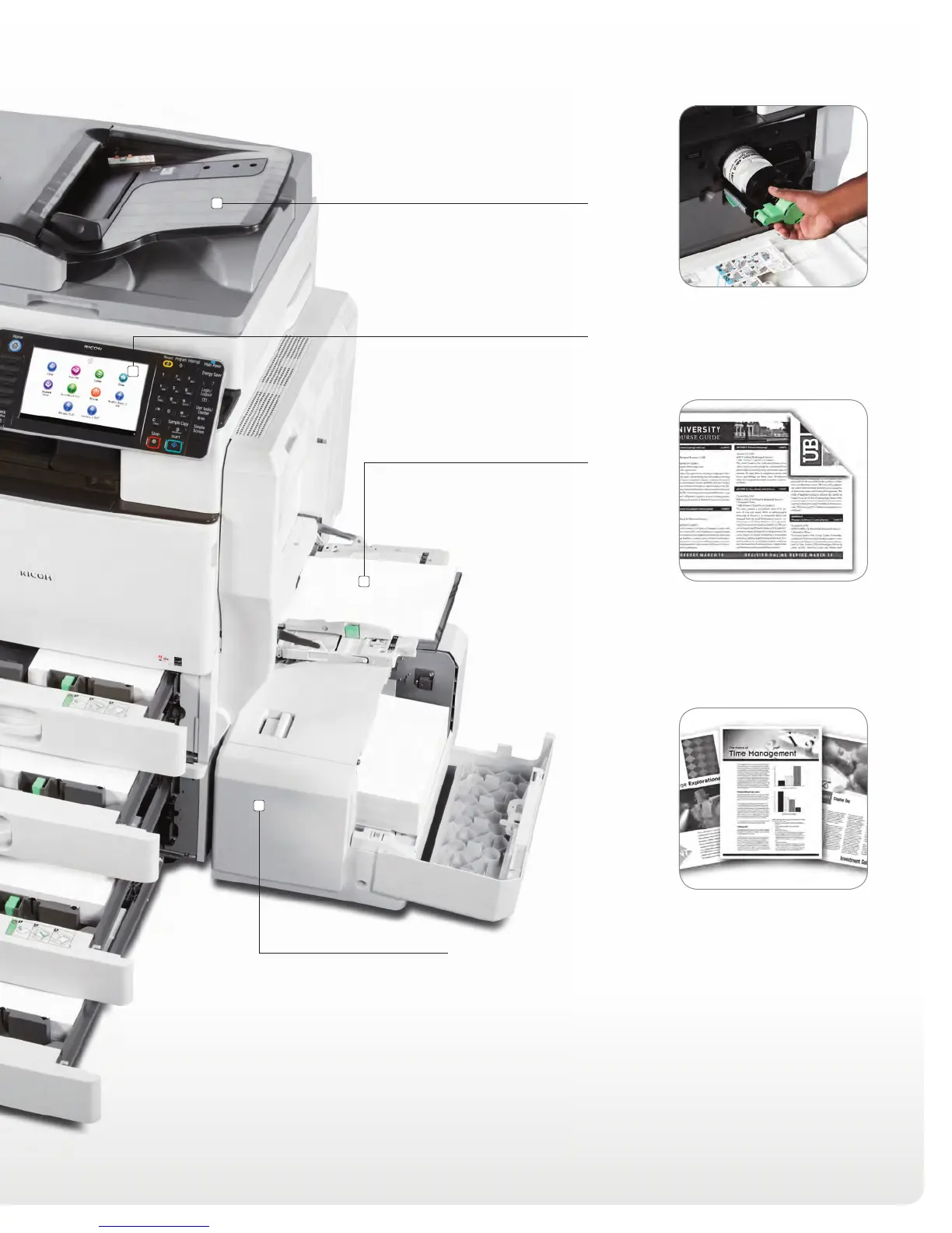 total capacity to 4,400 sheets. Enhance performance with optional faxing.