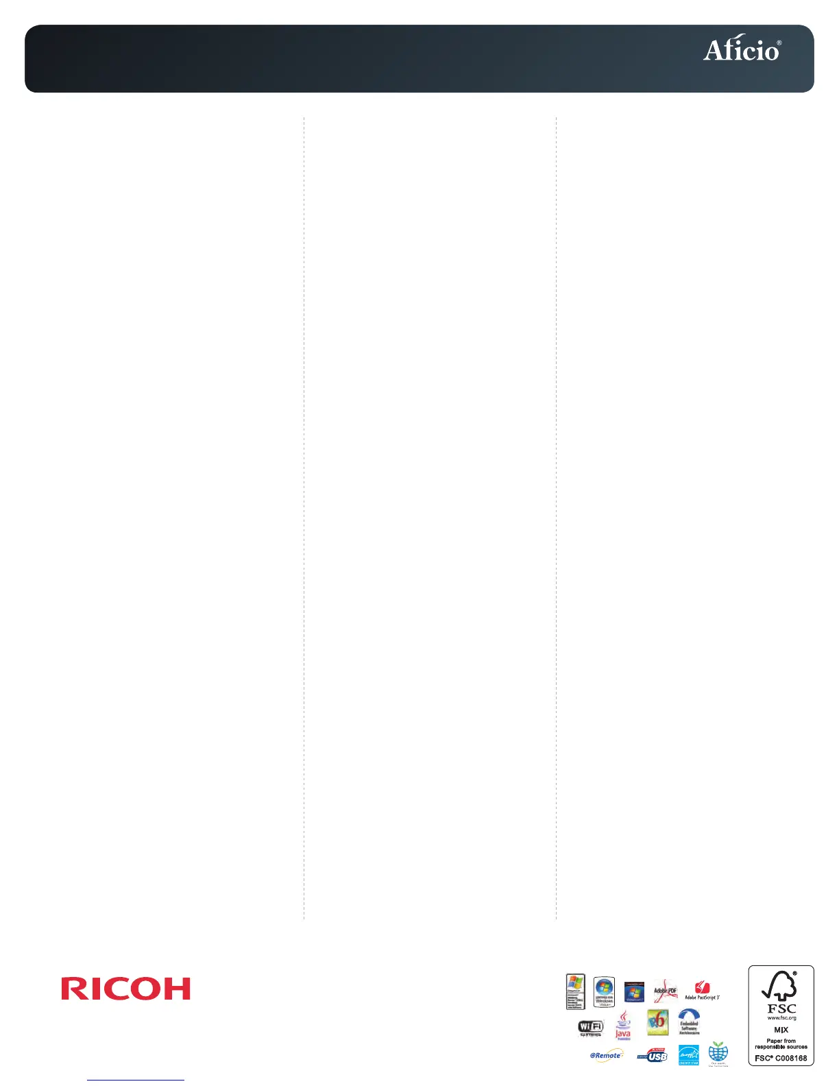 appearance, features and specifications of Ricoh products and services are subject to change from time to time without notice. Products are shown with optional features. While care