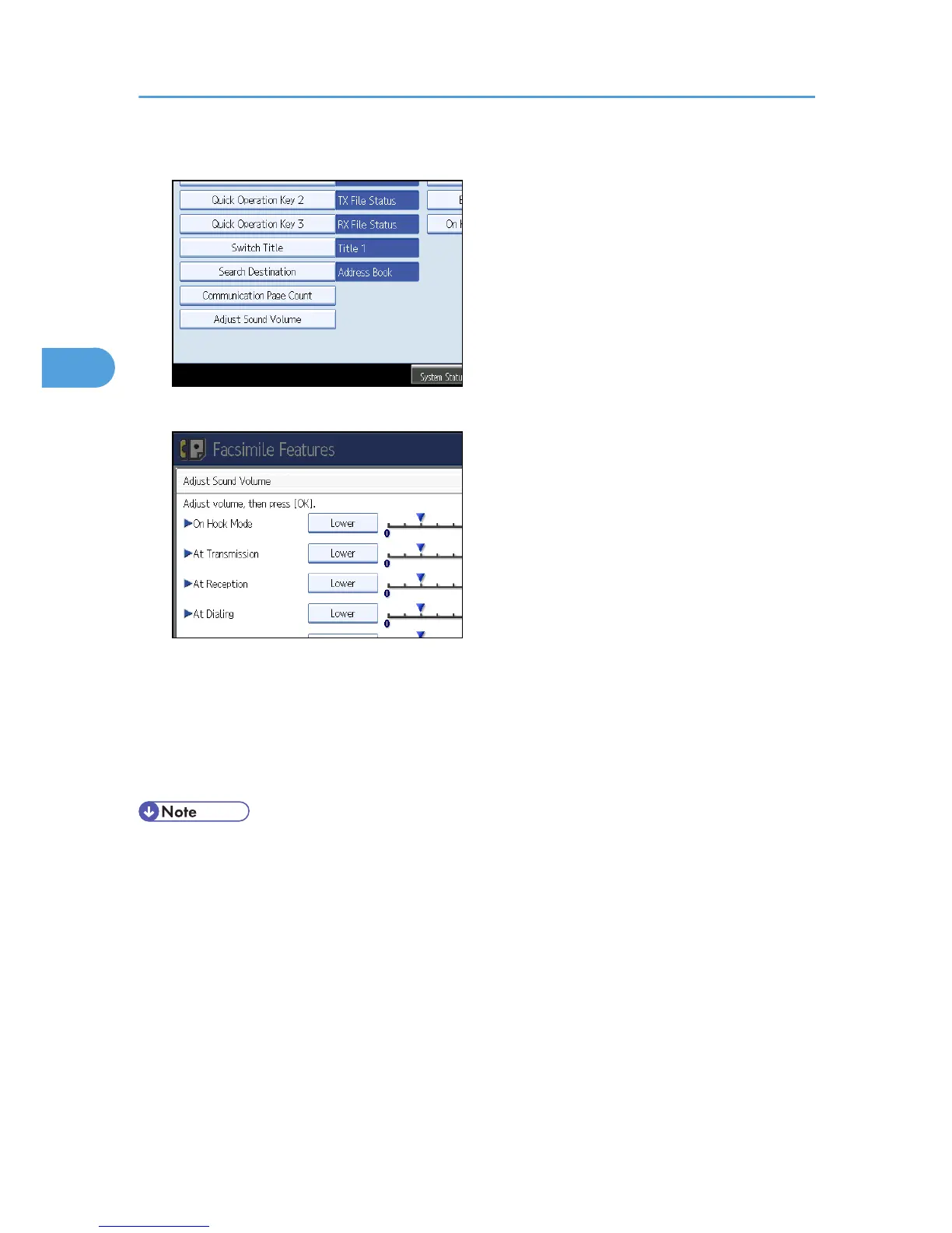 • You can adjust the On Hook volume when you press [On Hook]. See “On Hook Dial”, Facsimile