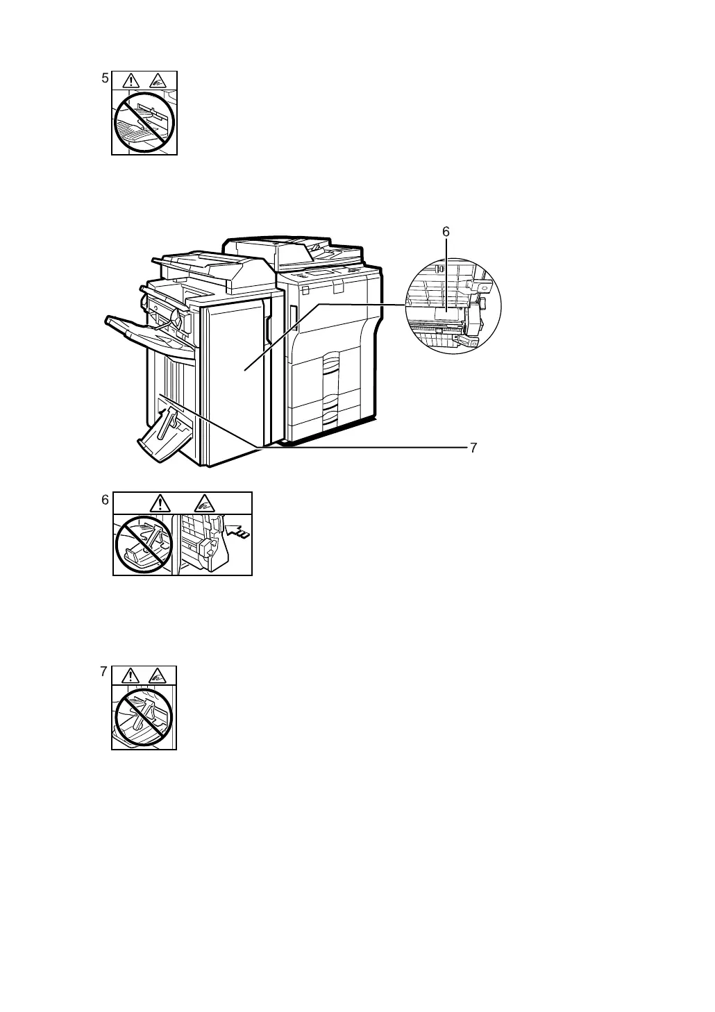 in the finisher's staple unit, or removing paper jam. You might trap your fingers