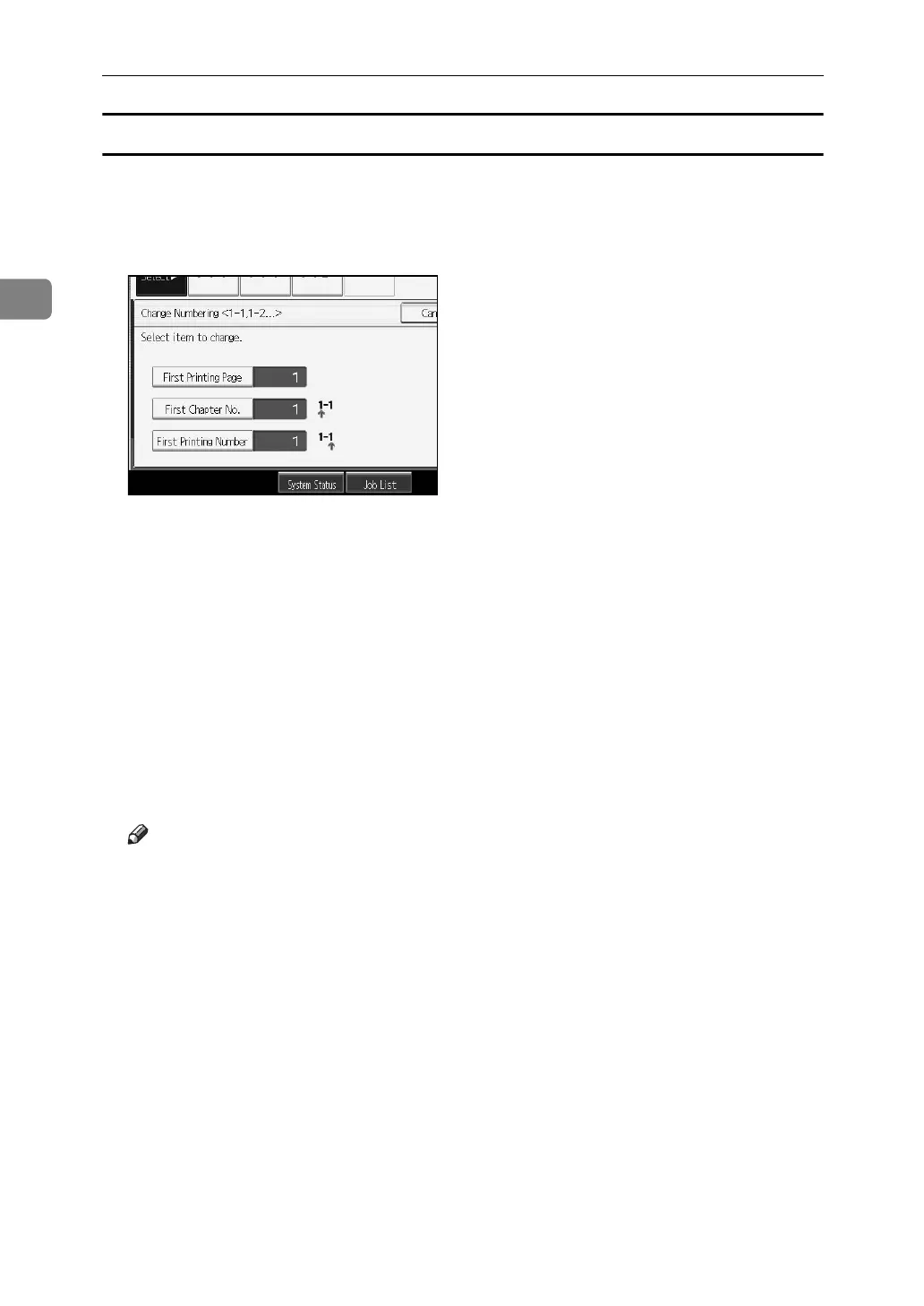❒ To change the settings (the first printing page, the chapter form which to