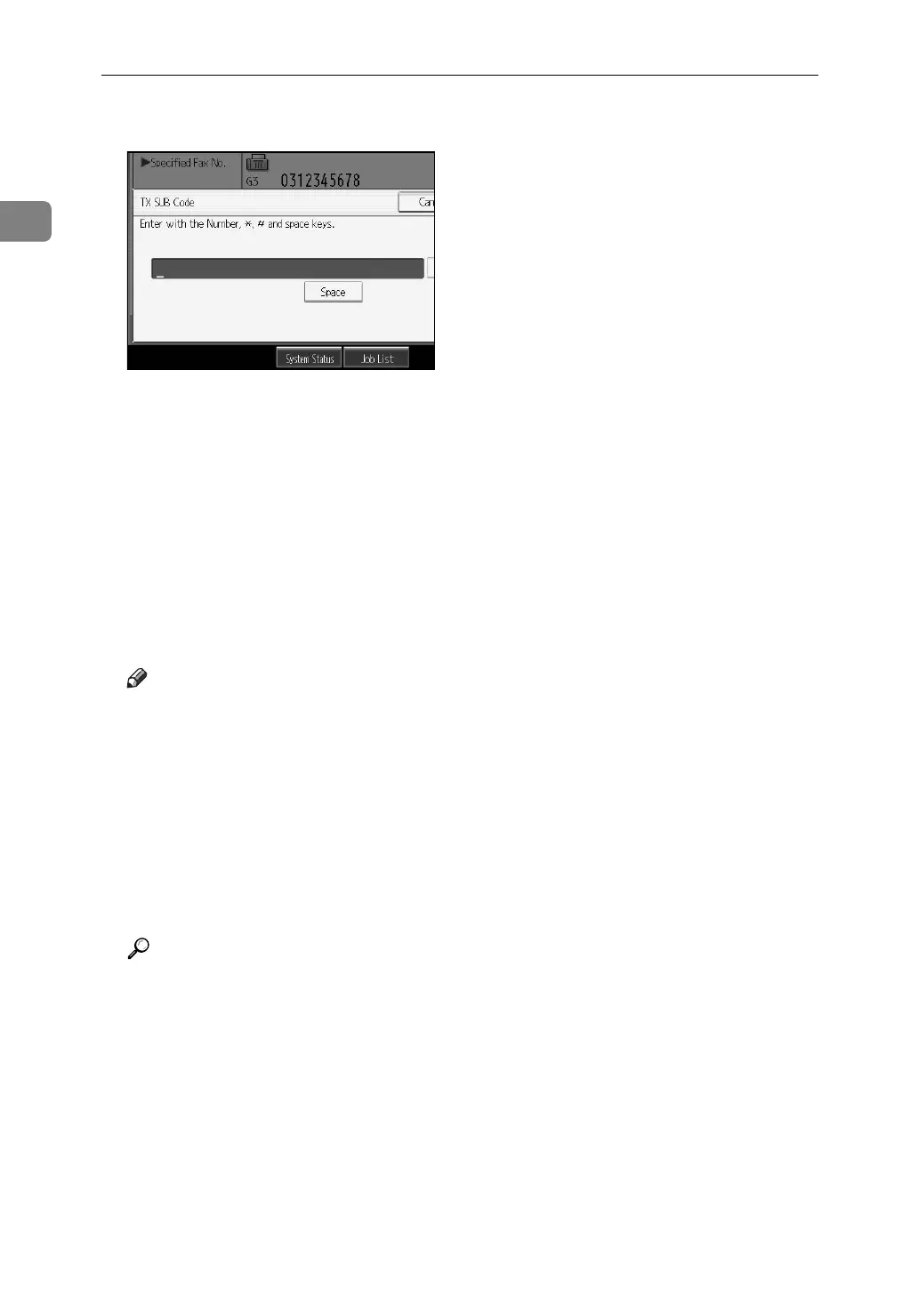 ❒ When a SUB Code is stored in the destination list, the SUB Code can be