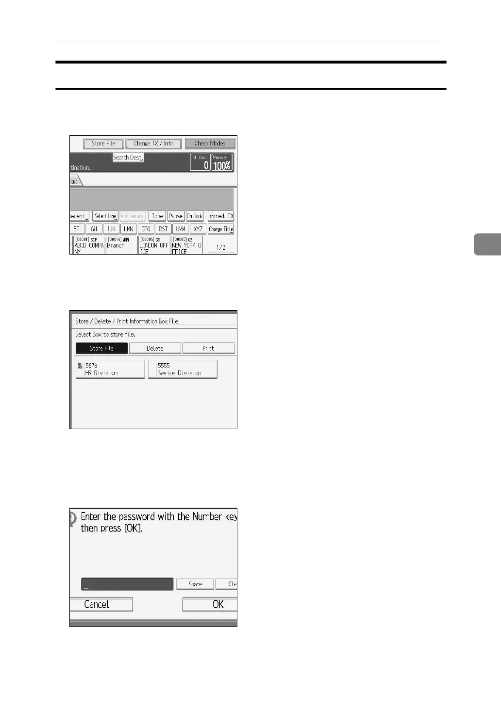 A message is displayed if you select a box with a file stored in it. Press [Yes]