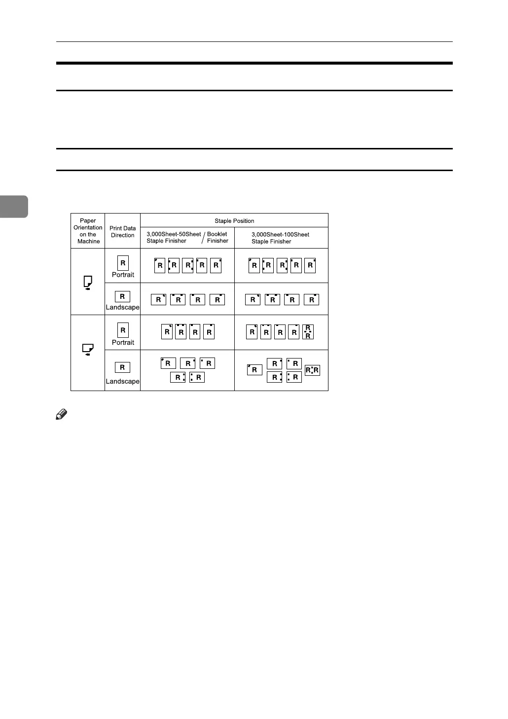 ❒ Stapling might not be in the specified position if combine (layout) and duplex