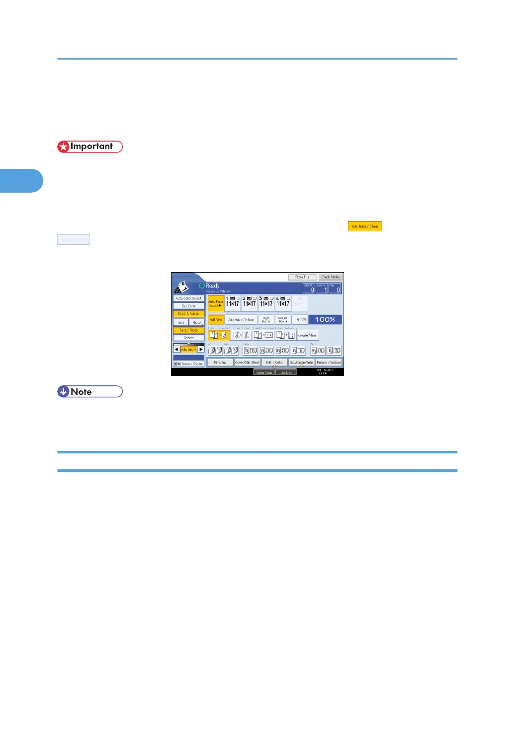 The copy display is set as the default screen when the machine is turned on.