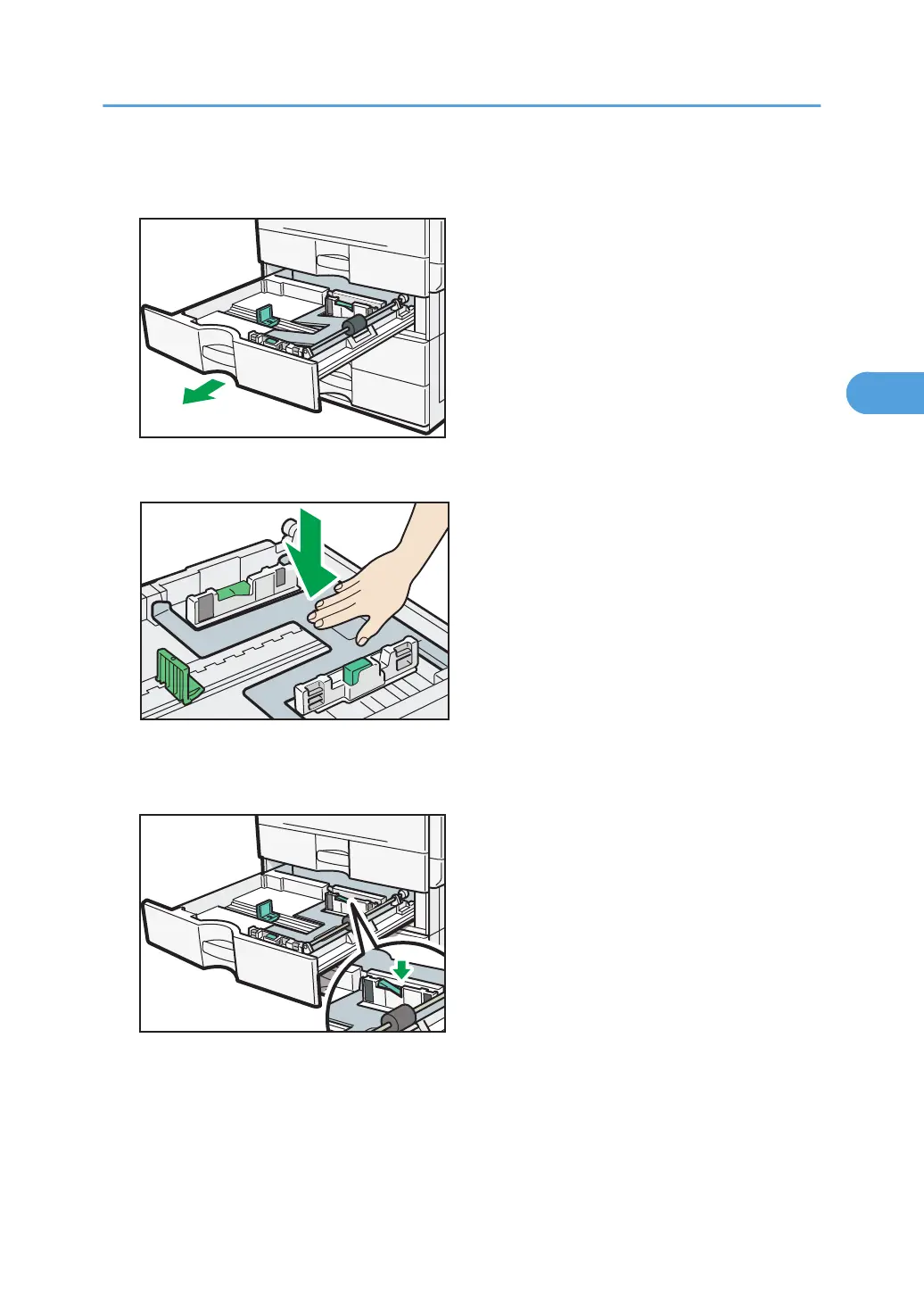 1. Check that paper in the paper tray is not being used, and then pull the tray carefully out