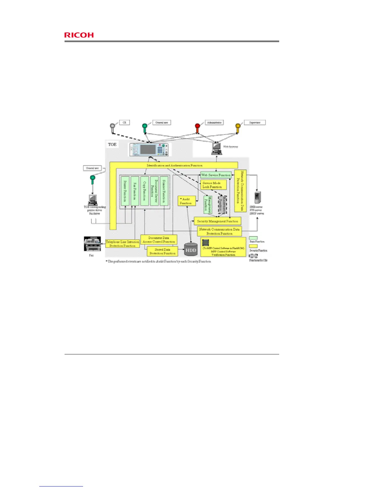 "Basic Functions", which is the service provided by the TOE to users, and the "Security Functions", which