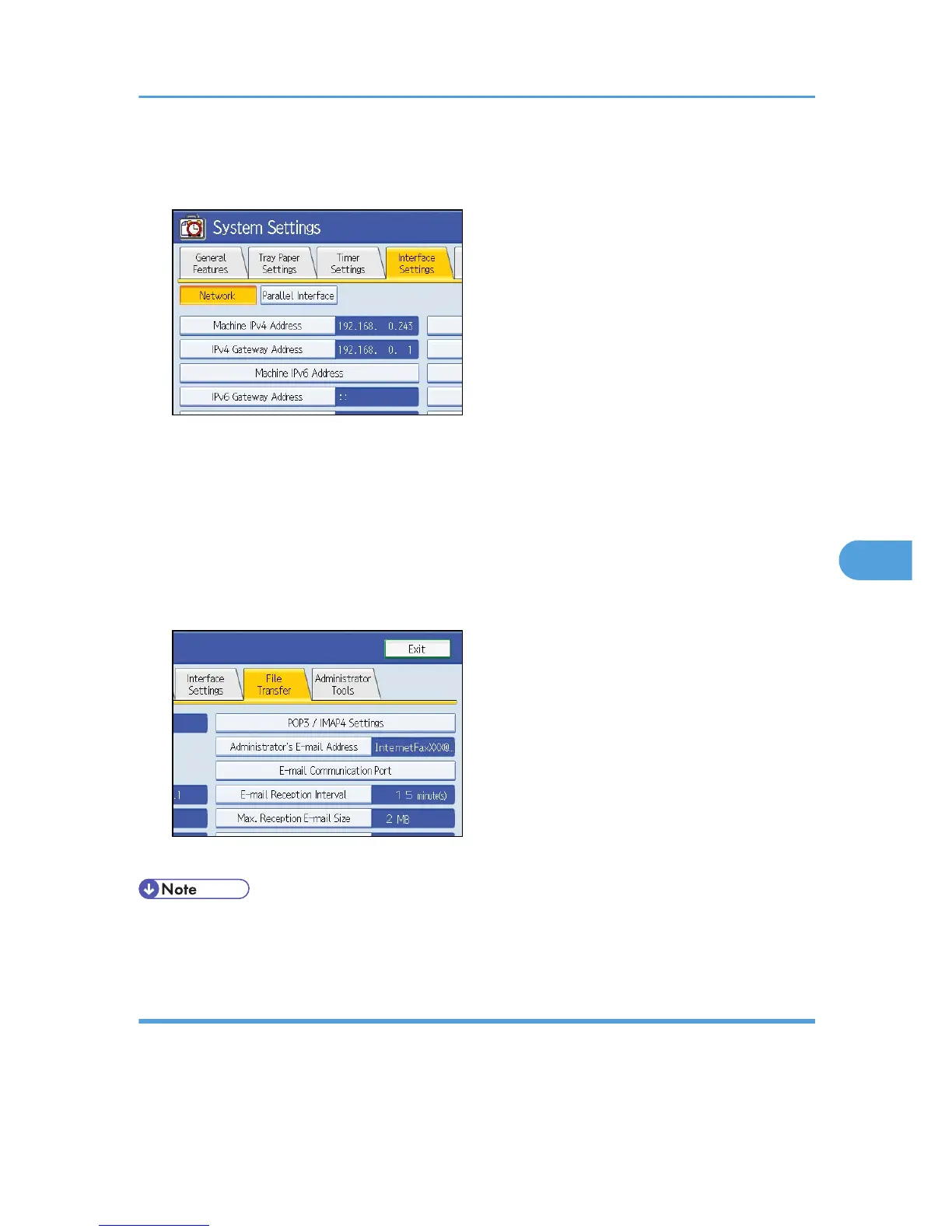 • If an extended wireless LAN board (optional) is installed, press [LAN Type ]on the [Interface Settings]