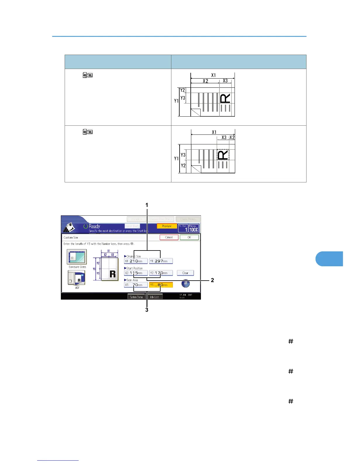 Enter the actual values in [X3] and [Y3] while referring to "How to measure sizes", and then press the [ ] key.