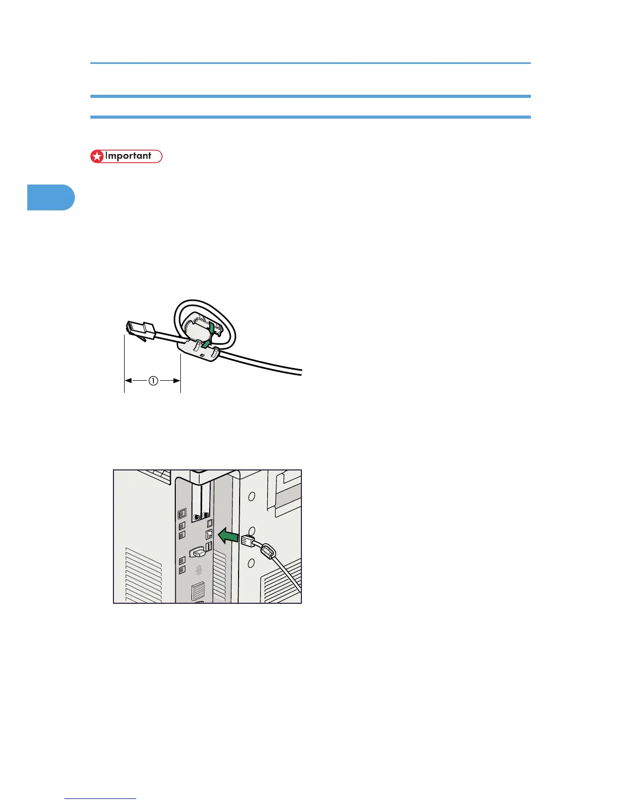 1. A ferrite core for the Ethernet interface cable is supplied with this machine. Make a loop in