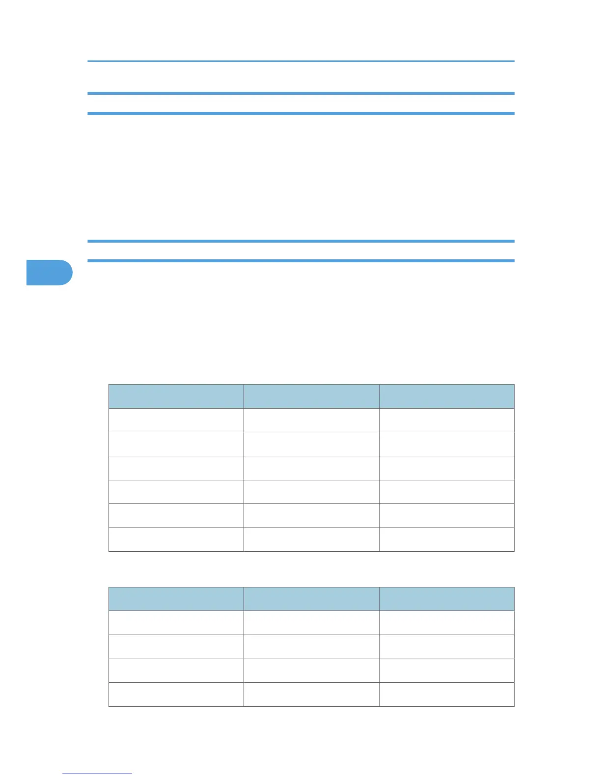 The following tables show Web Image Monitor items that can be viewed or modified depending on the